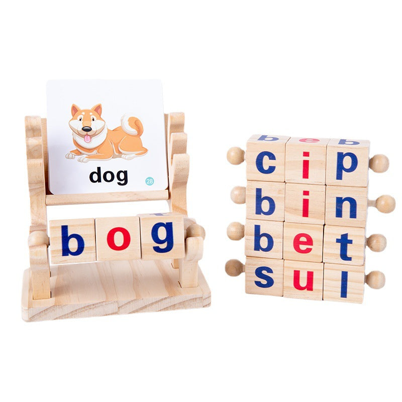 The Spin and Spell Set makes learning actually fun - how? It’s a hands-on, interactive game. Your little one isn’t just memorizing words or struggling to write them down. They’re spinning and matching wooden blocks - that’s fun!