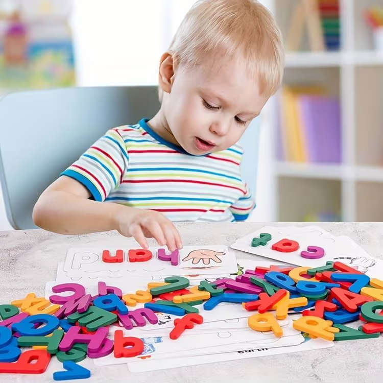 It’s a much more engaging and fun way for kids to learn spelling. The best thing is even 3-year-olds can get the hang of it before they know how to use a pen. The secret is in the carved-out letters and image cards.